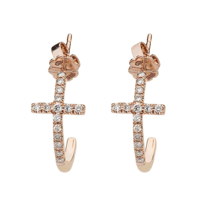 14K Rose Gold Cross Diamond Hoop Earrings