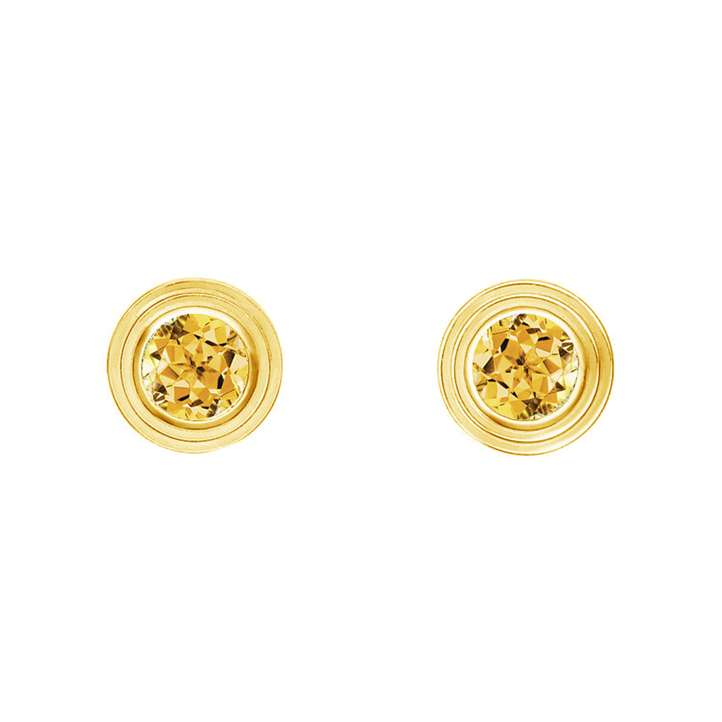 14K Yellow Gold Citrine Birthstone Stud Earrings