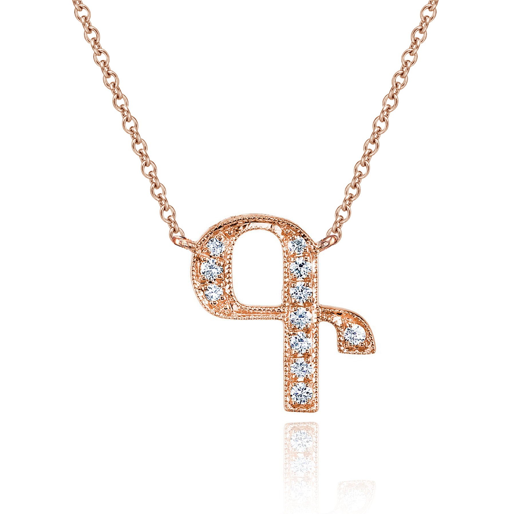 14K Rose Gold Armenian Initial Diamond Necklace