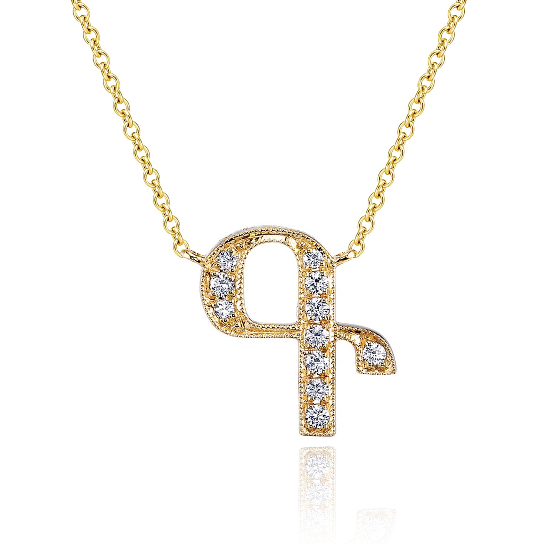 14K Yellow Gold Armenian Initial Diamond Necklace