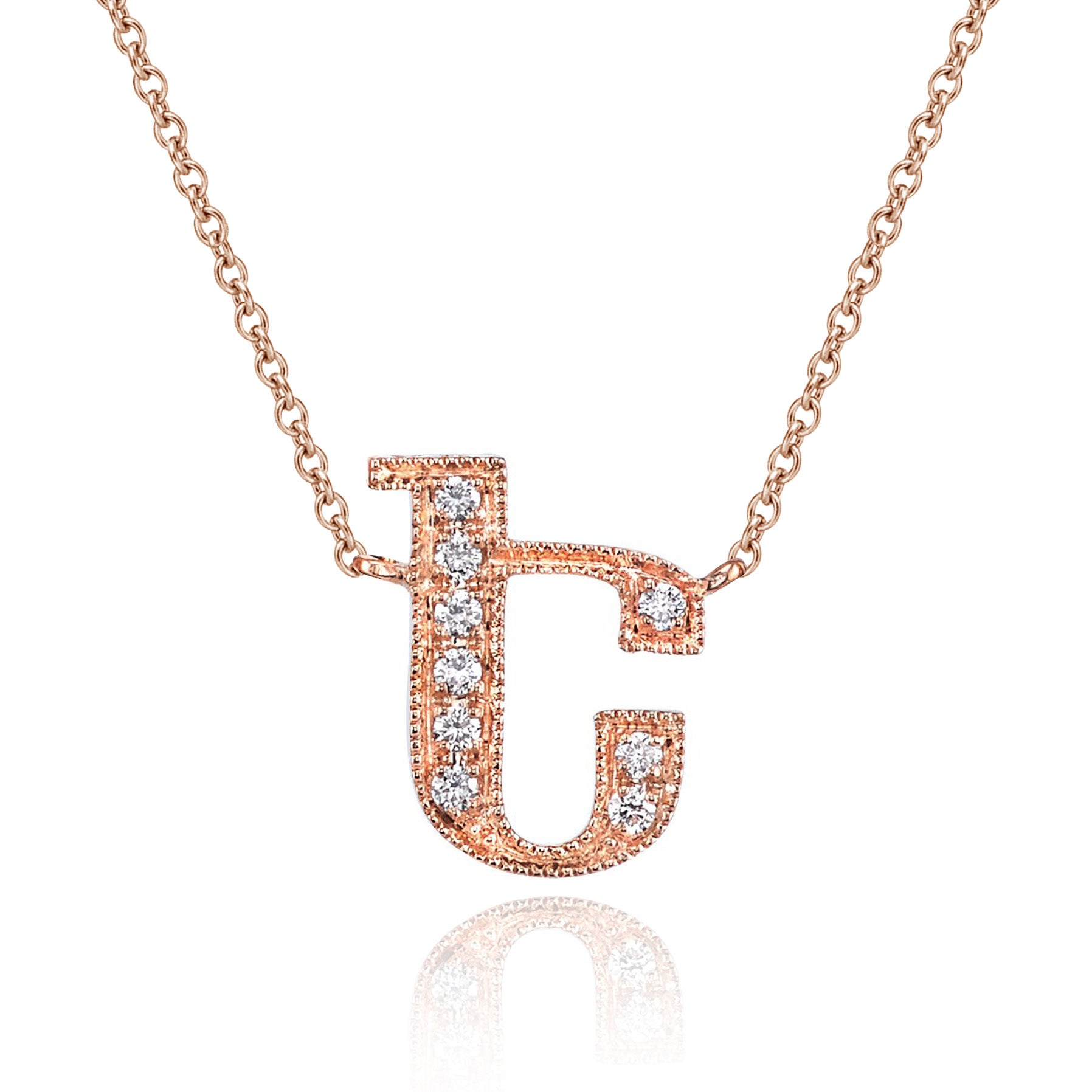 Unique classical Armenian letter pendant necklaces. Available in all 38 letters and set in 14 karat rose gold with genuine diamonds.