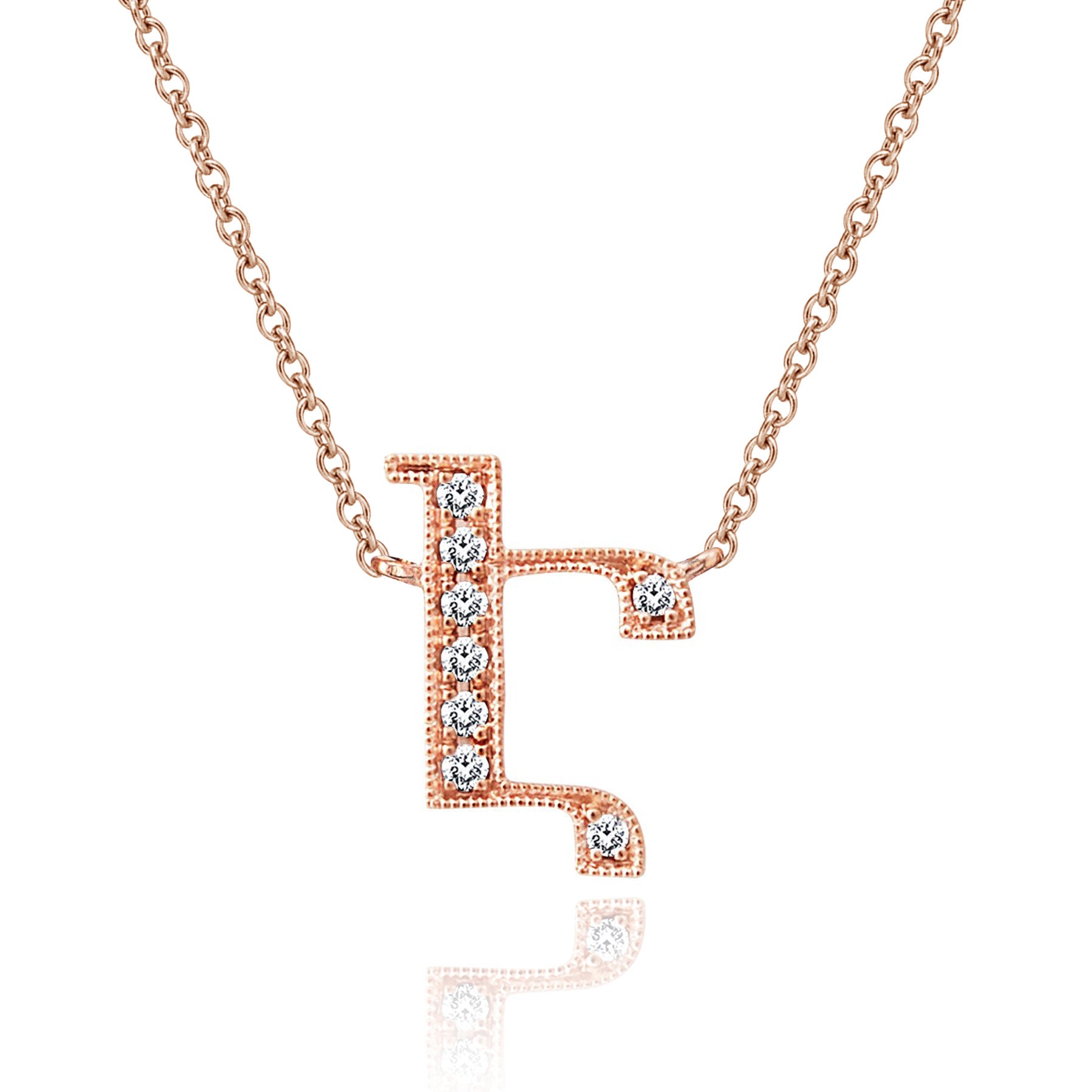 Unique classical Armenian letter pendant necklaces. Available in all 38 letters and set in 14 karat rose gold with genuine diamonds.