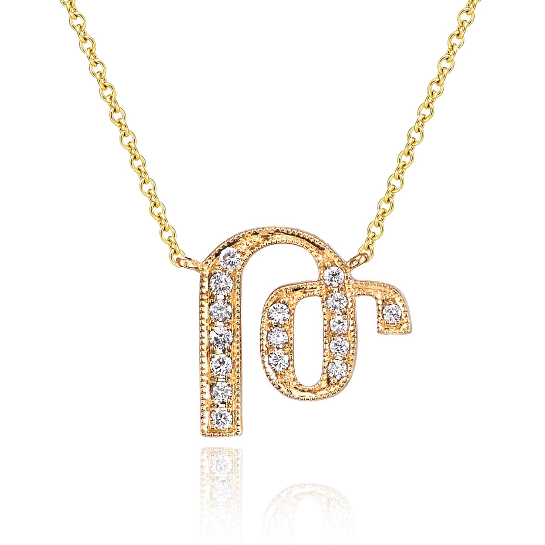 14K Yellow Gold Armenian Initial Diamond Necklace