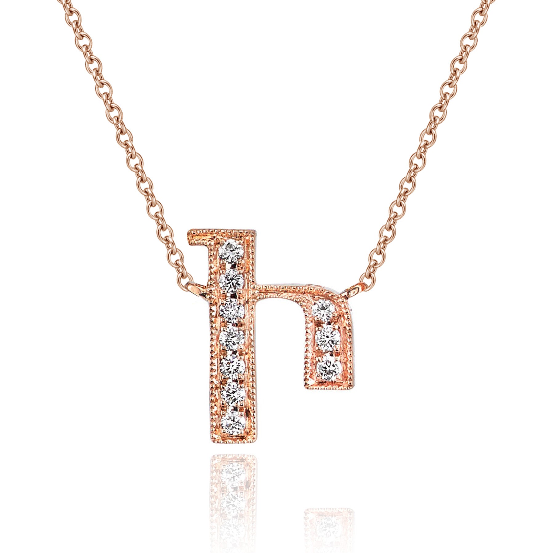 Unique classical Armenian letter pendant necklaces. Available in all 38 letters and set in 14 karat rose gold with genuine diamonds.