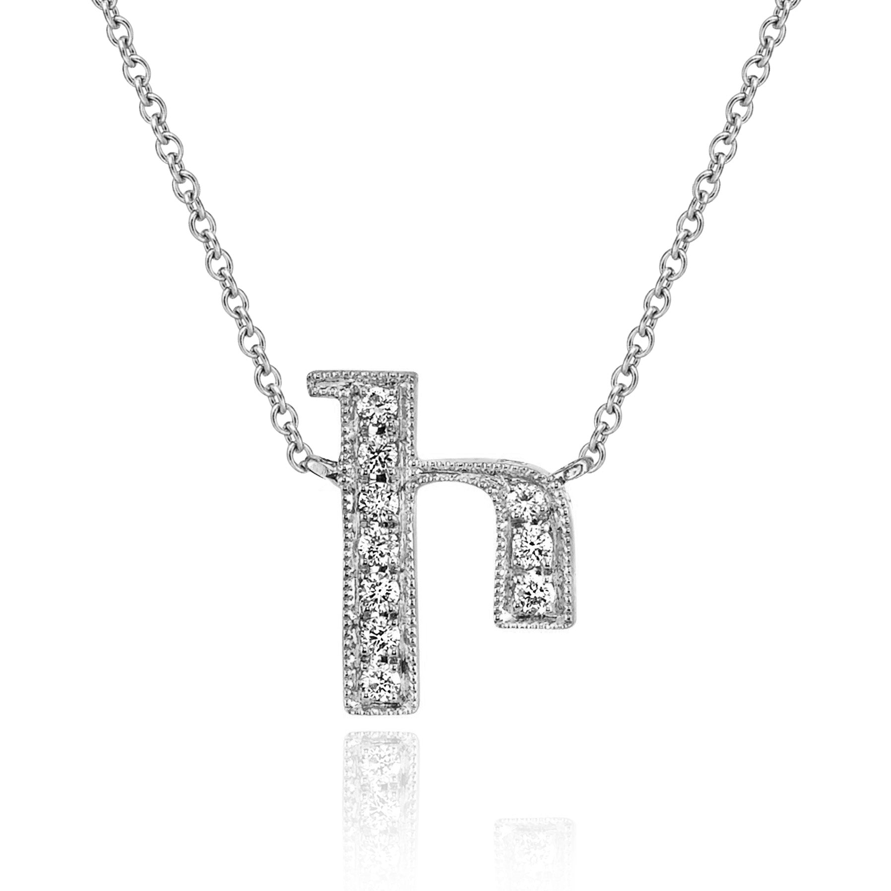 Unique classical Armenian letter pendant necklaces. Available in all 38 letters and set in 14 karat white gold with genuine diamonds.