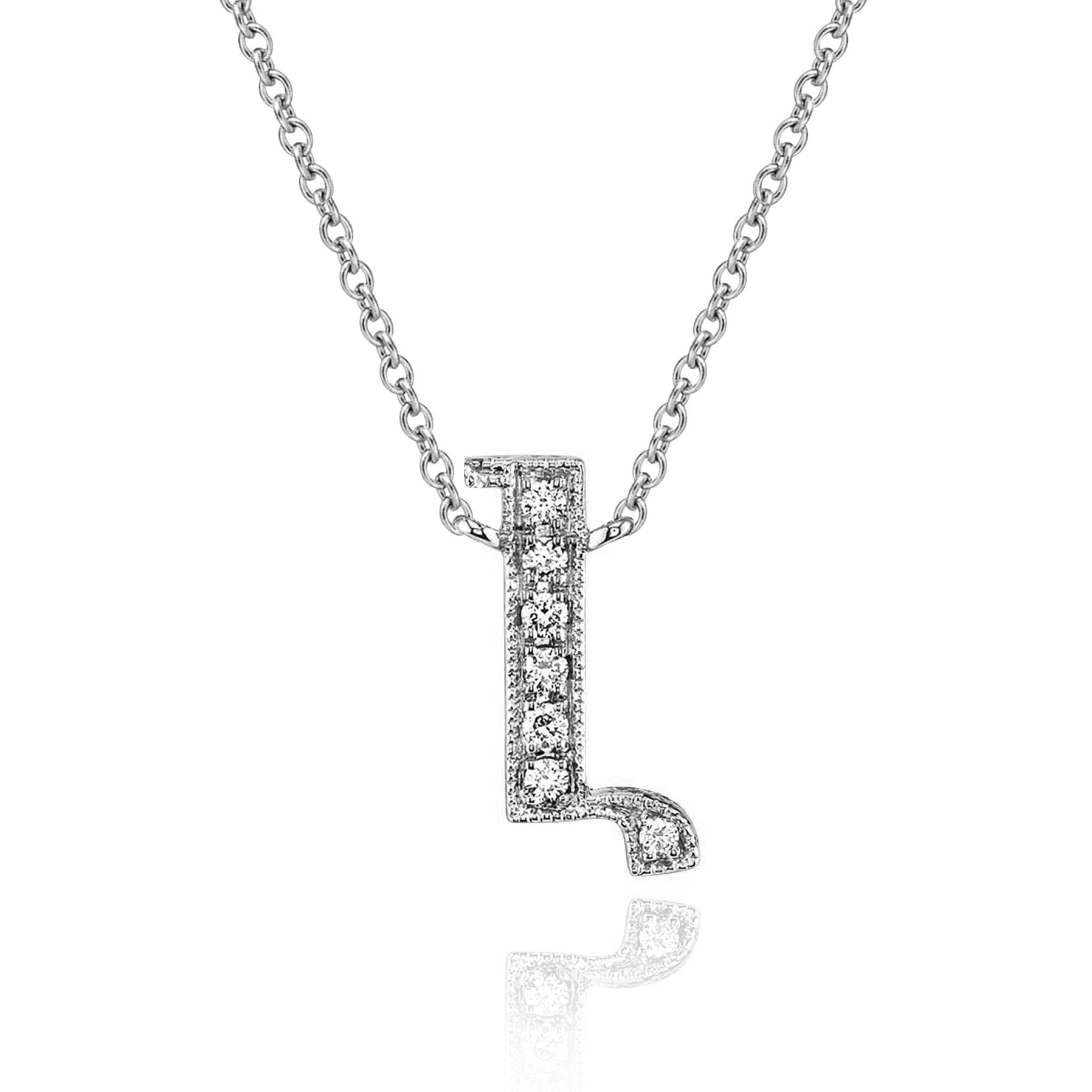 Unique classical Armenian letter pendant necklaces. Available in all 38 letters and set in 14 karat white gold with genuine diamonds.
