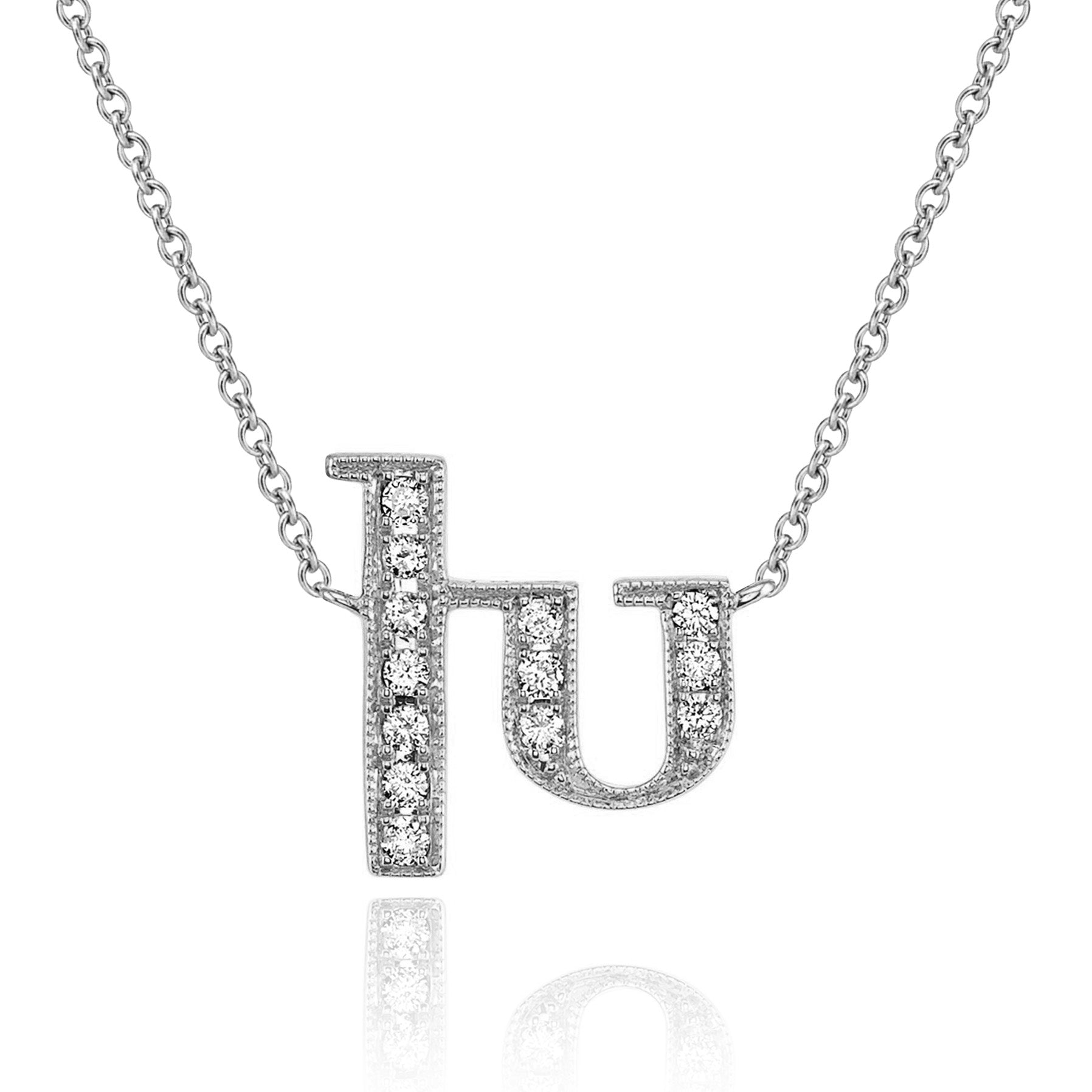 Unique classical Armenian letter pendant necklaces. Available in all 38 letters and set in 14 karat white gold with genuine diamonds.