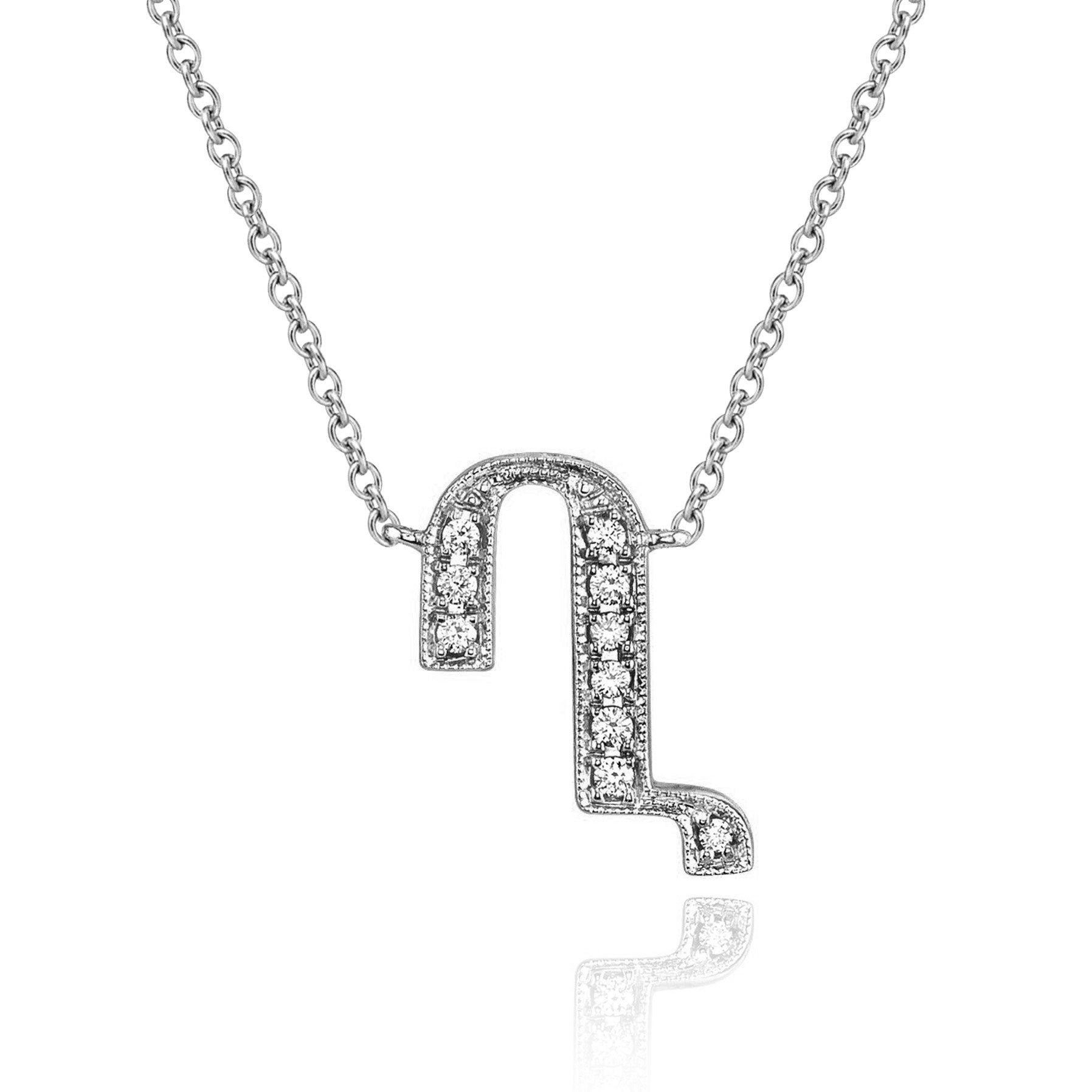 Unique classical Armenian letter pendant necklaces. Available in all 38 letters and set in 14 karat white gold with genuine diamonds.