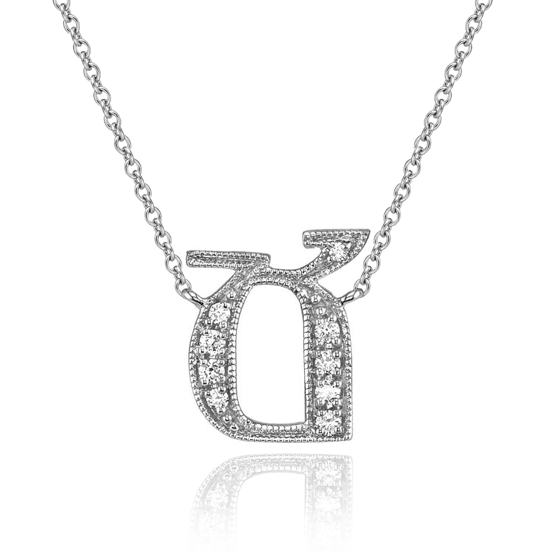 Unique classical Armenian letter pendant necklaces. Available in all 38 letters and set in 14 karat white gold with genuine diamonds.