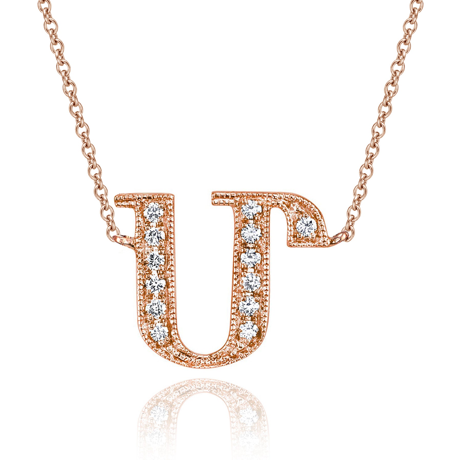 Unique classical Armenian letter pendant necklaces. Available in all 38 letters and set in 14 karat rose gold with genuine diamonds.