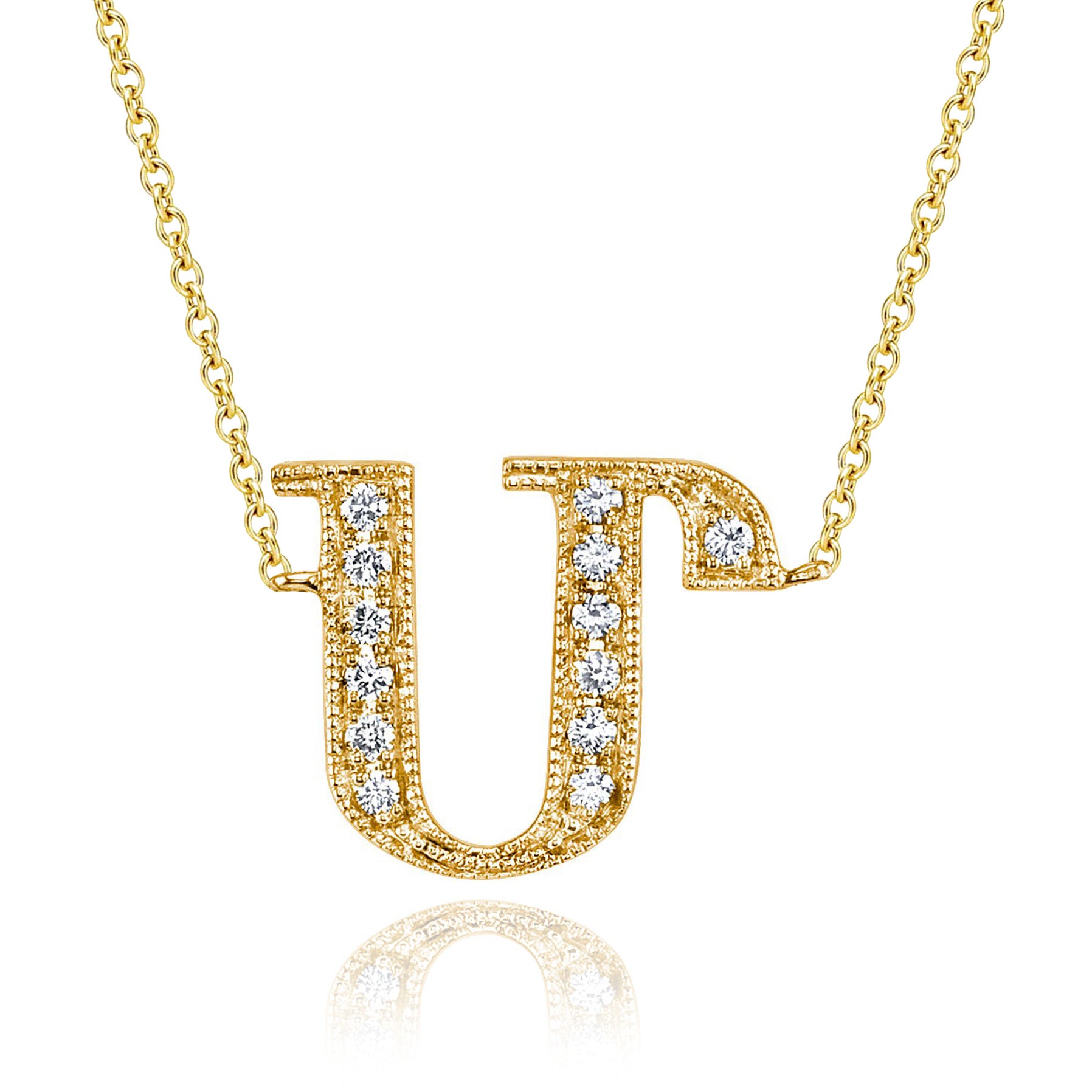 14K Yellow Gold Armenian Initial Diamond Necklace