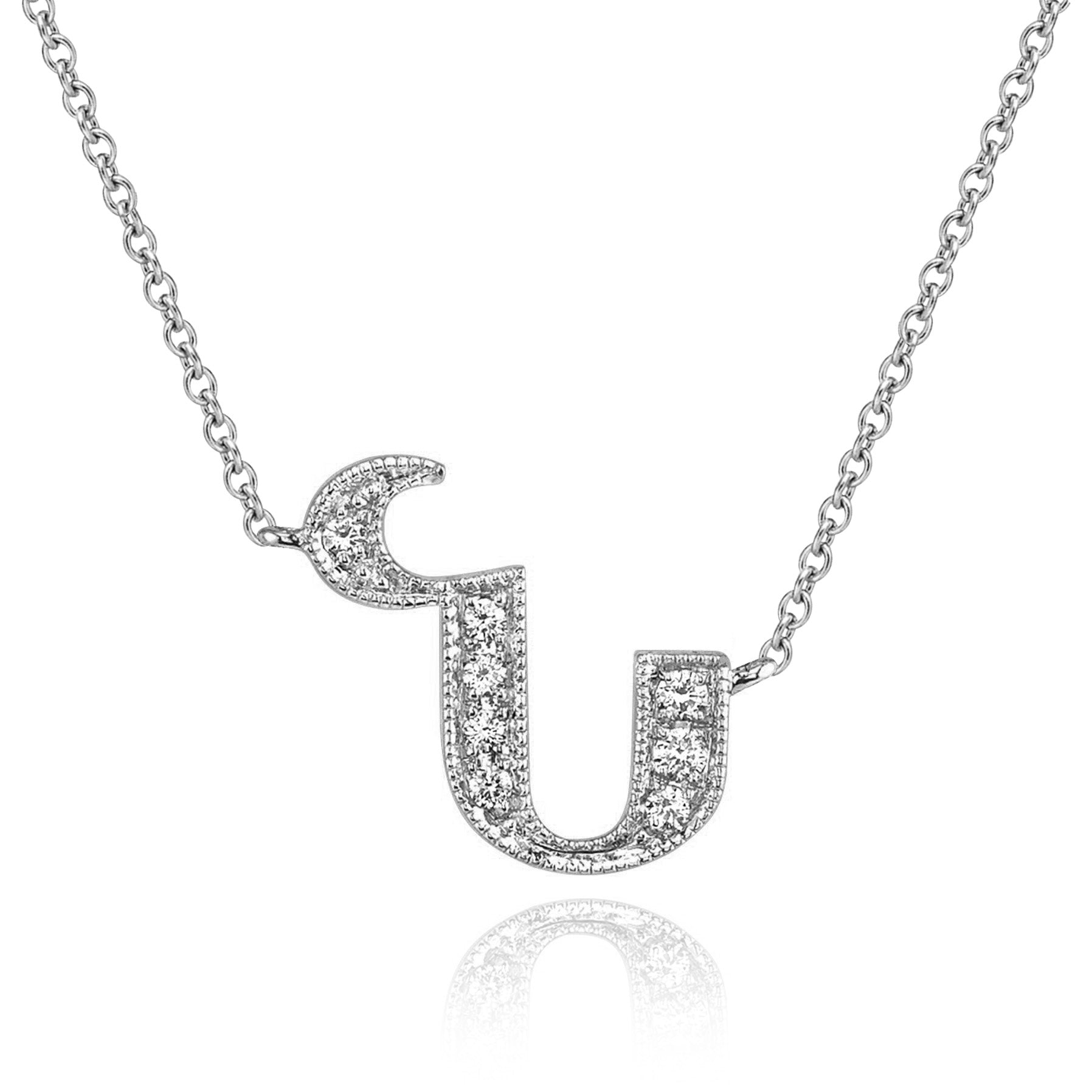 Unique classical Armenian letter pendant necklaces. Available in all 38 letters and set in 14 karat white gold with genuine diamonds.