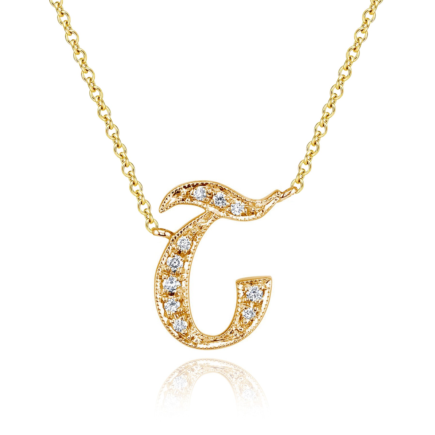 14K Yellow Gold Armenian Initial Diamond Necklace
