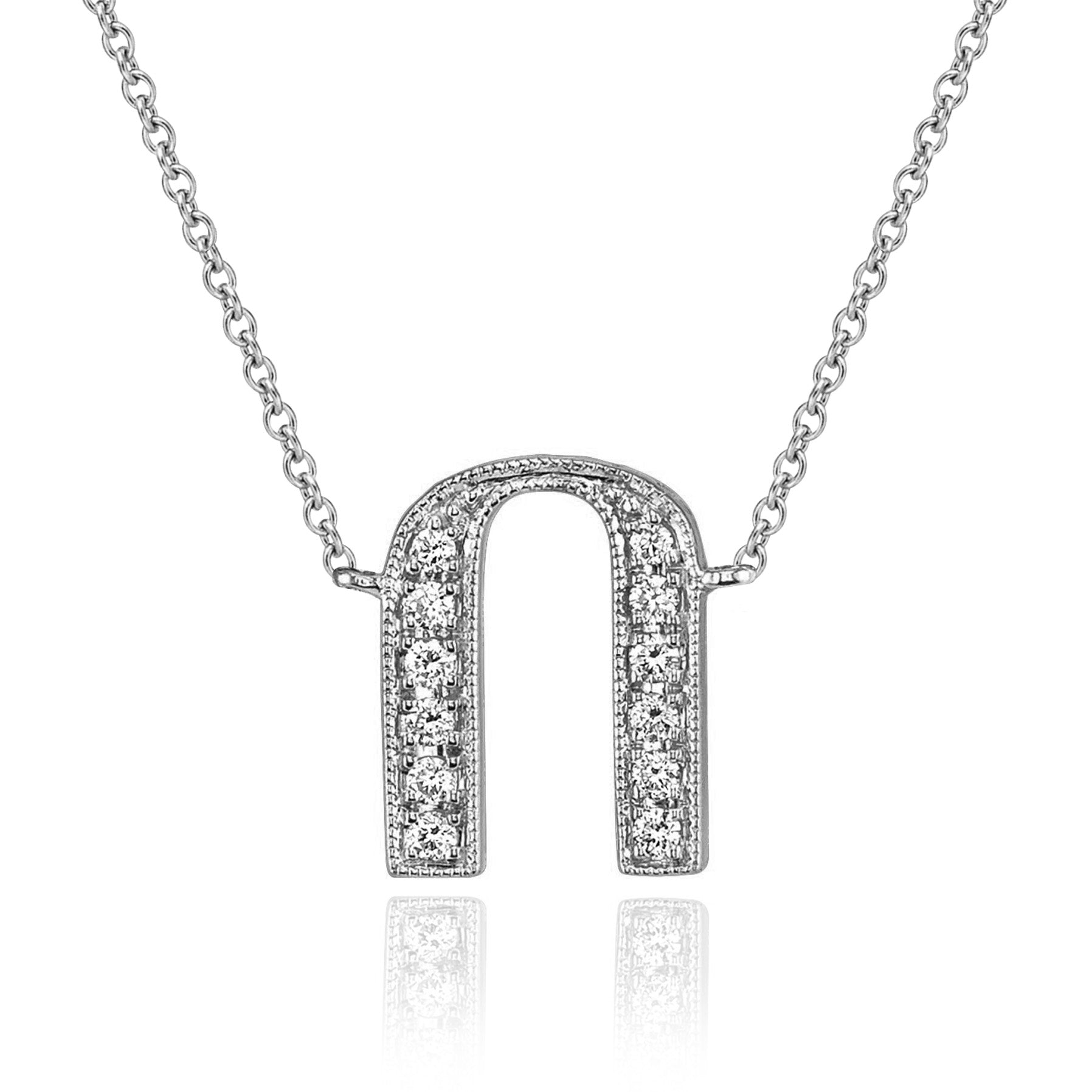 Unique classical Armenian letter pendant necklaces. Available in all 38 letters and set in 14 karat white gold with genuine diamonds.