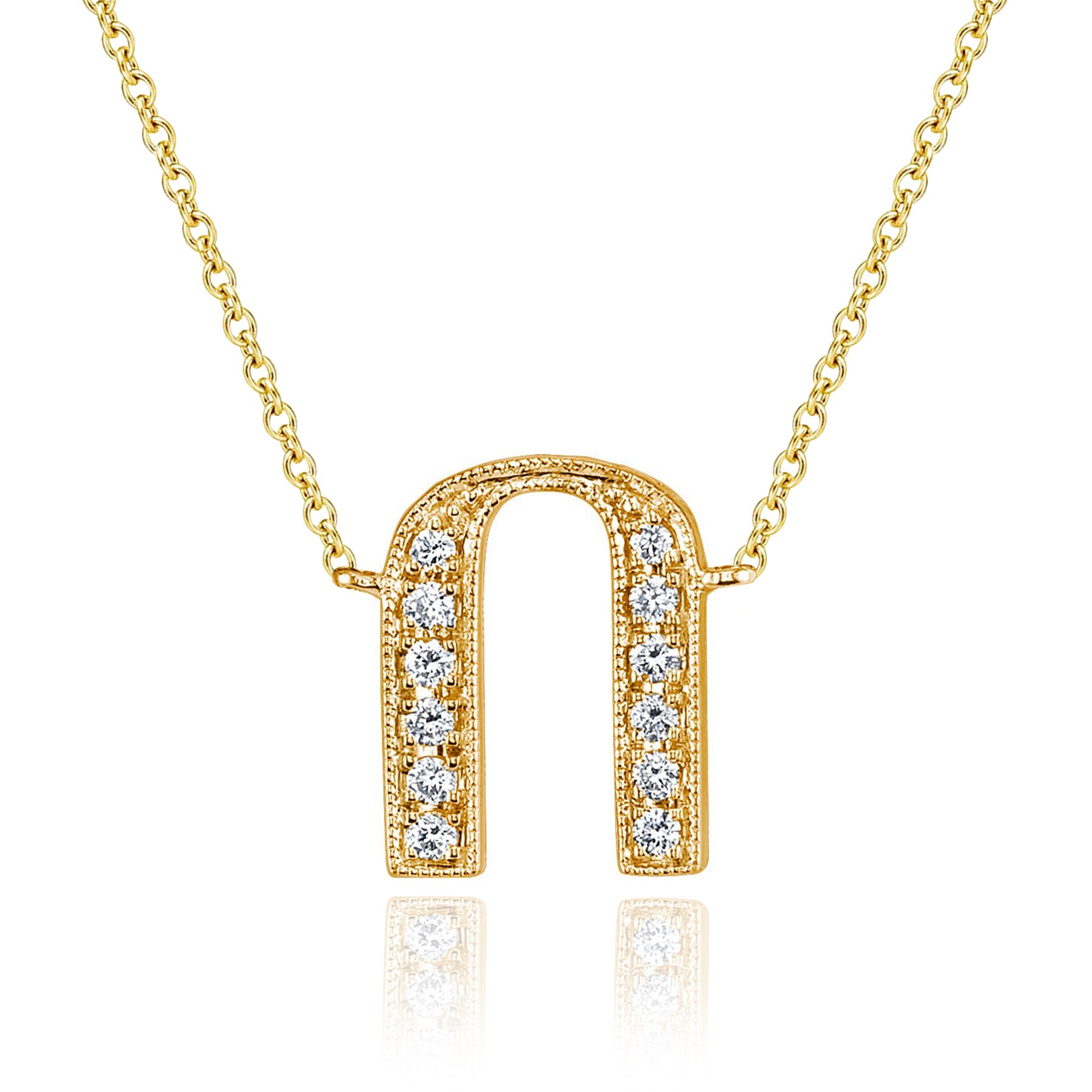 14K Yellow Gold Armenian Initial Diamond Necklace