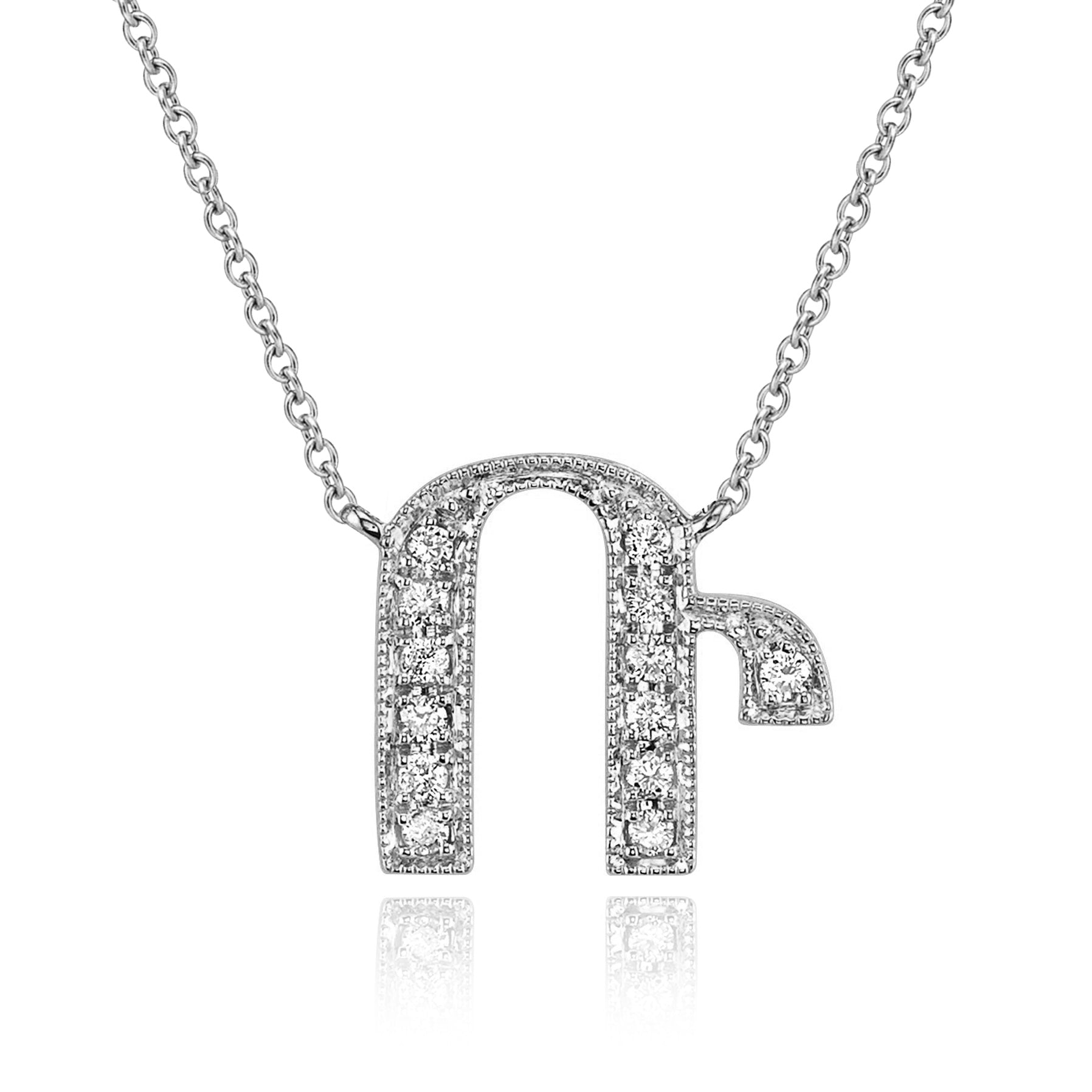 Unique classical Armenian letter pendant necklaces. Available in all 38 letters and set in 14 karat white gold with genuine diamonds.