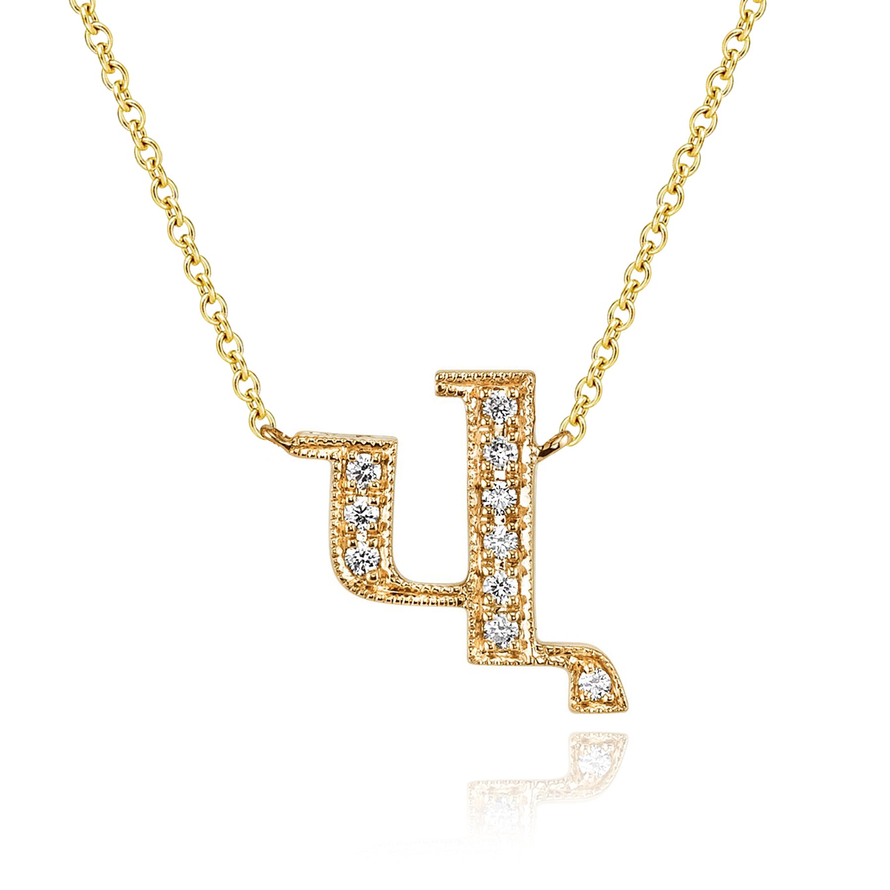14K Yellow Gold Armenian Initial Diamond Necklace