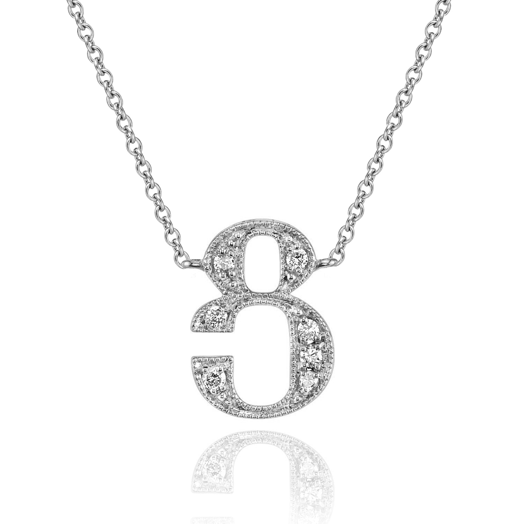14K White Gold Armenian Initial Diamond Necklace