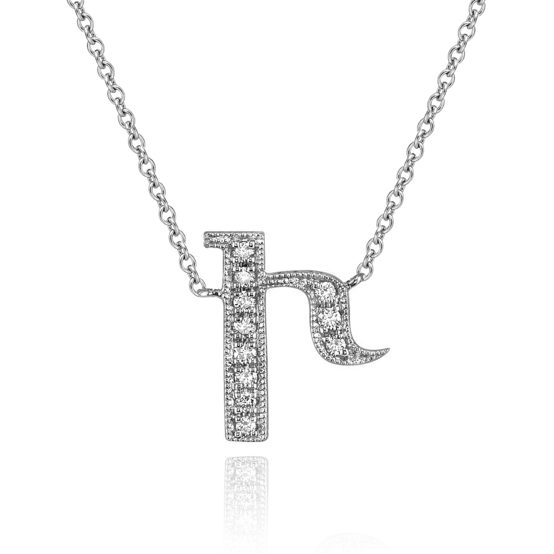 Unique classical Armenian letter pendant necklaces. Available in all 38 letters and set in 14 karat white gold with genuine diamonds.