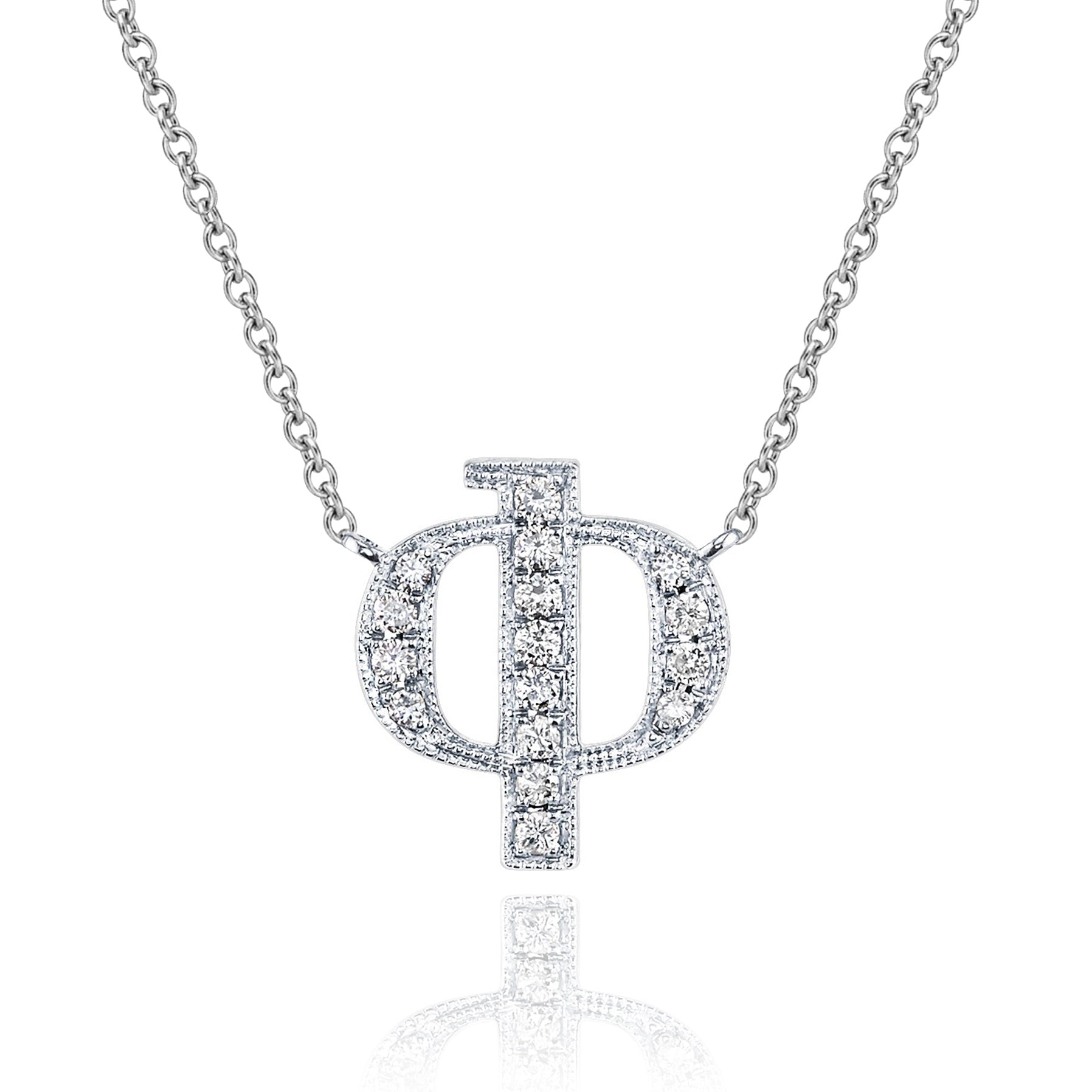 Unique classical Armenian letter pendant necklaces. Available in all 38 letters and set in 14 karat white gold with genuine diamonds.