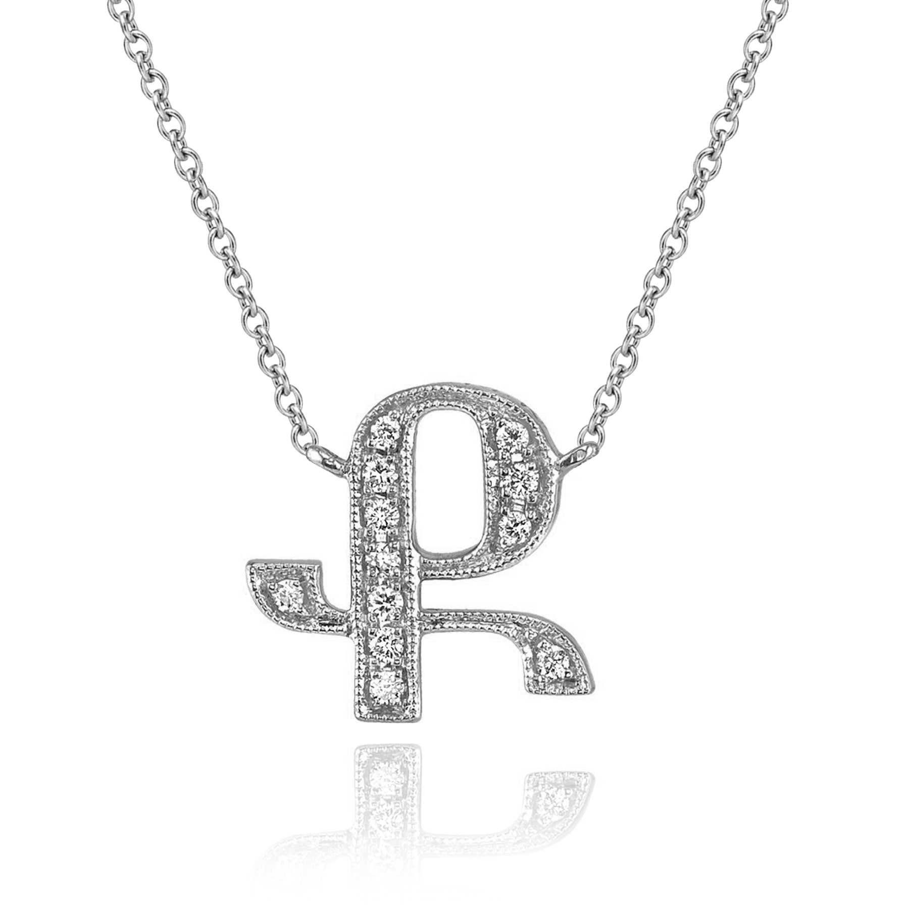 Unique classical Armenian letter pendant necklaces. Available in all 38 letters and set in 14 karat white gold with genuine diamonds.