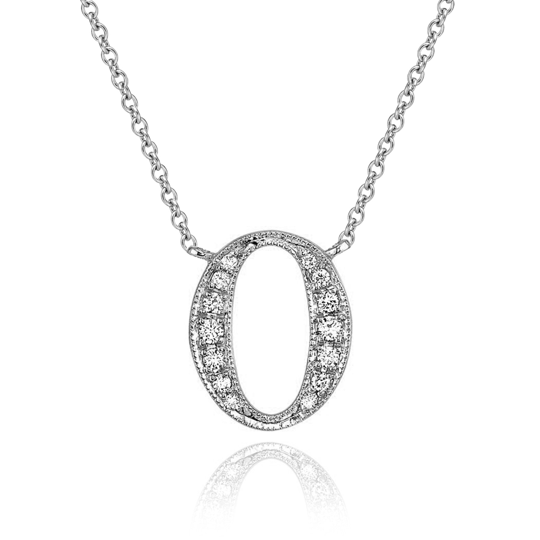 14K White Gold Armenian Initial Diamond Necklace