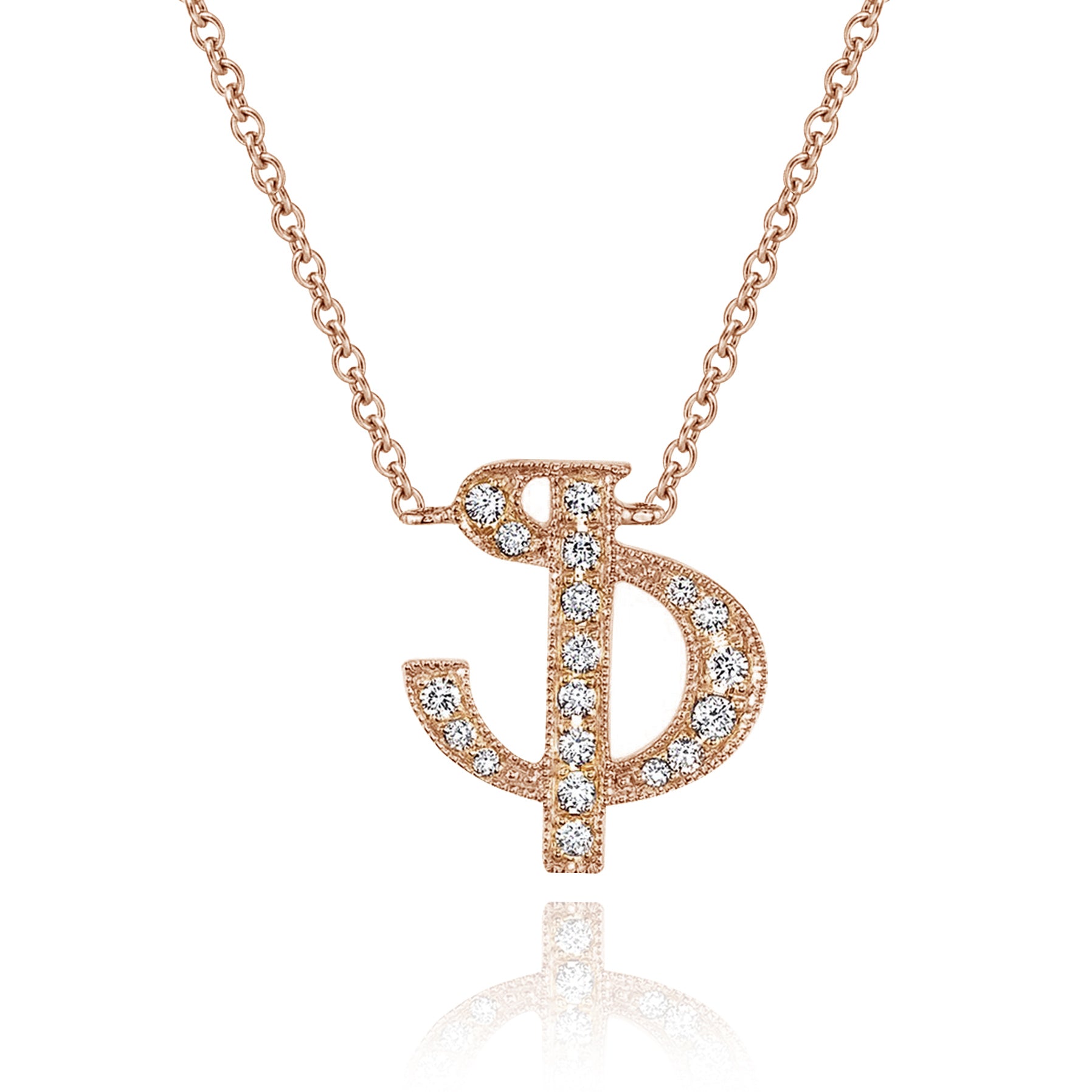 Unique classical Armenian letter pendant necklaces. Available in all 38 letters and set in 14 karat rose gold with genuine diamonds.