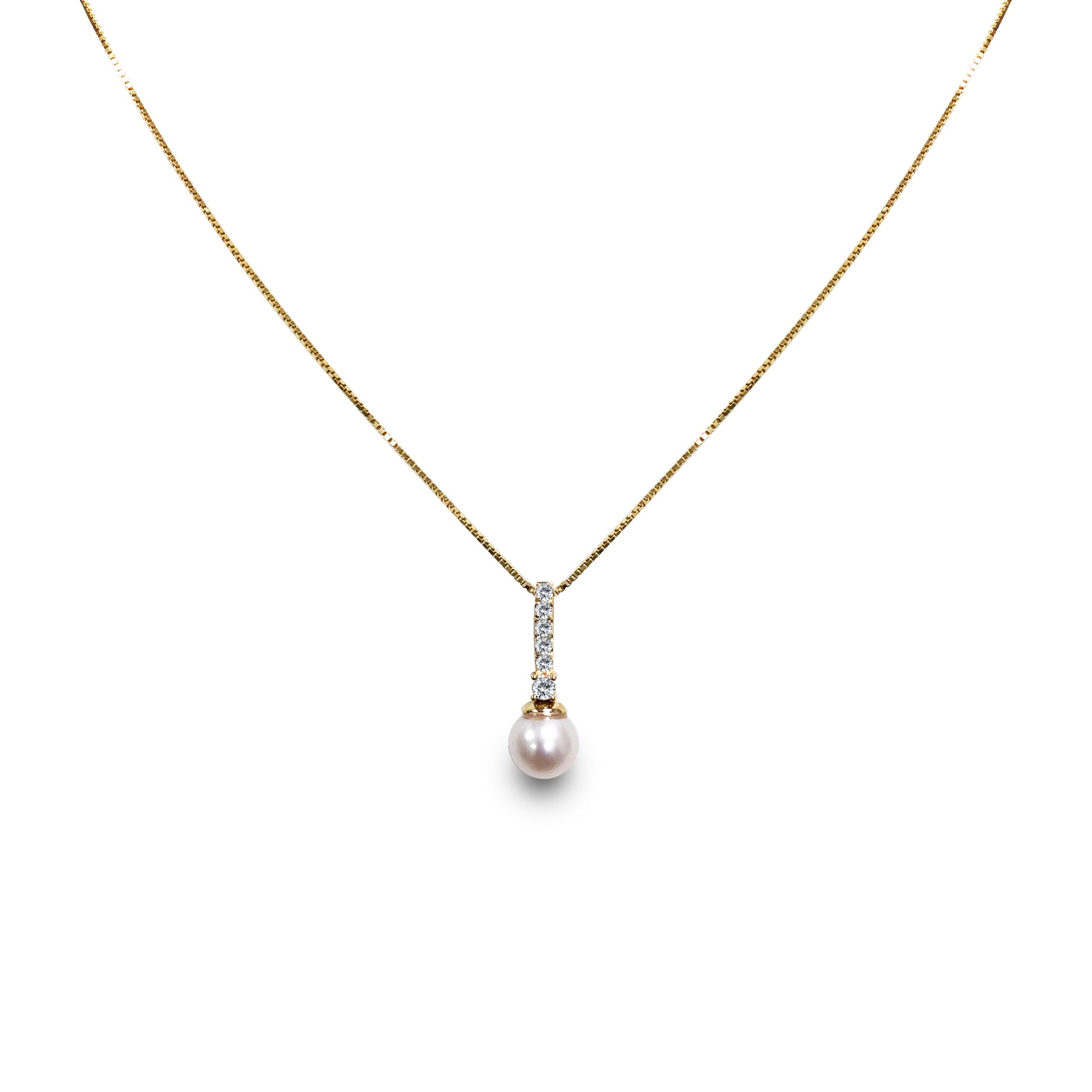 14K Yellow Gold 7mm Cultured Pearl Necklace With Diamonds