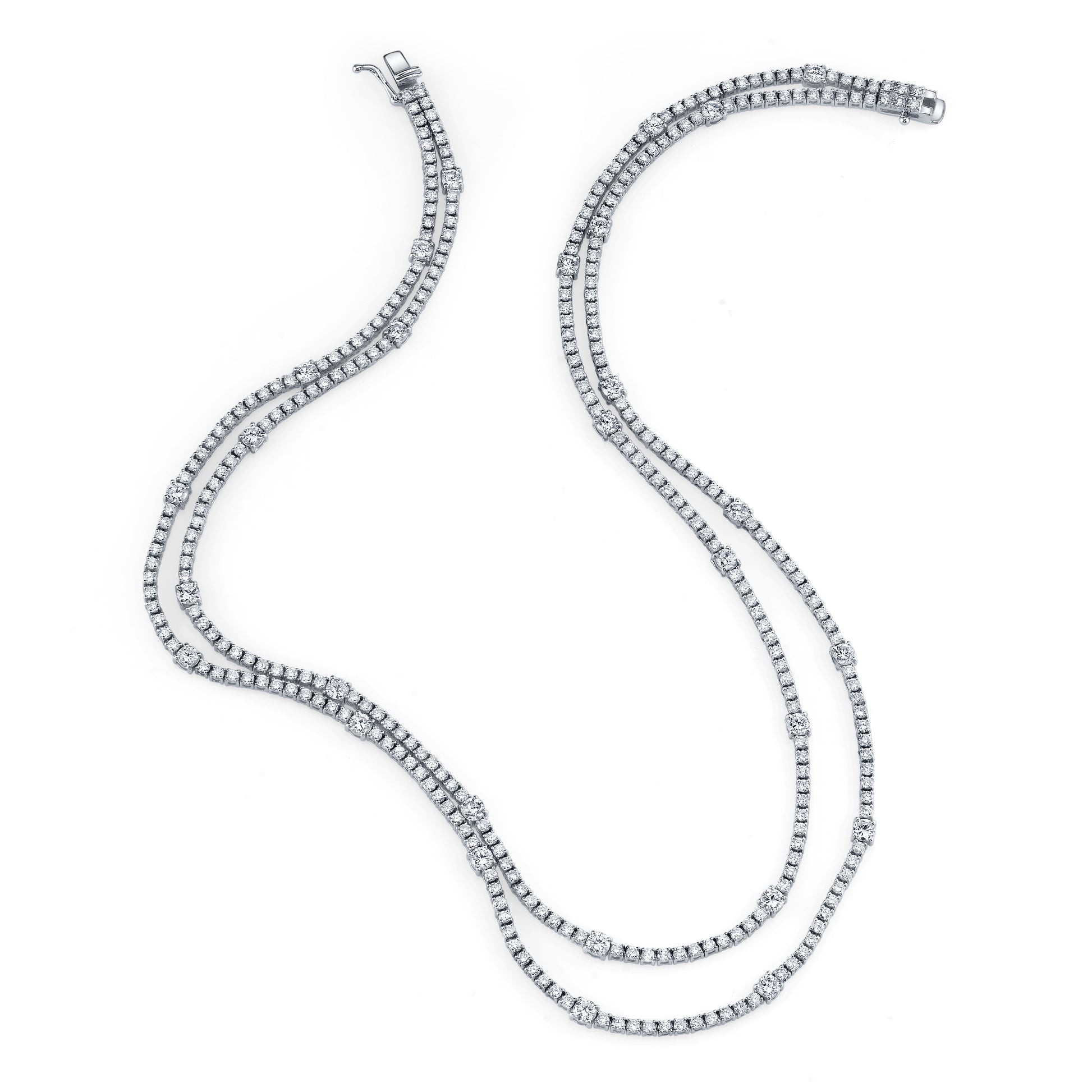18K White Gold Double Strand Diamond Tennis Necklace