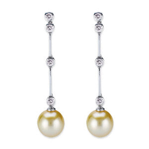 18K White Gold Diamond Dangle Earrings With Yellow Pearl