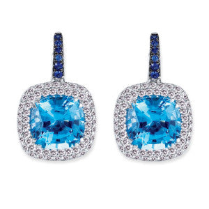 18K White Gold Earrings With Diamonds Sapphires And Center Blue Topaz