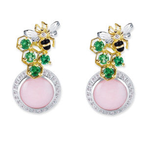 18K Two Tone Diamond Earrings With Quartz And Agate