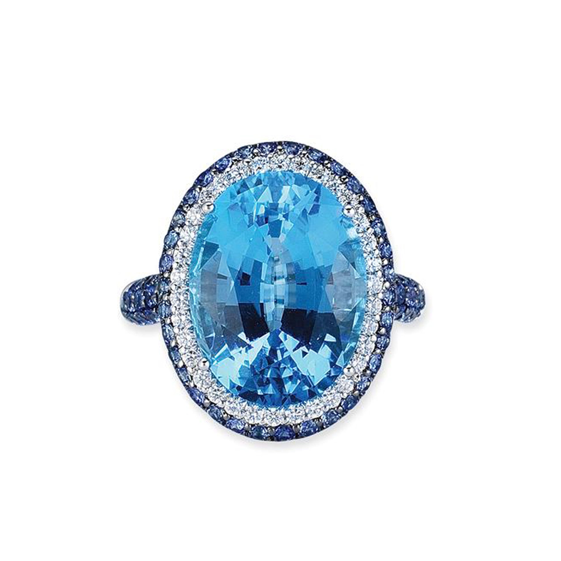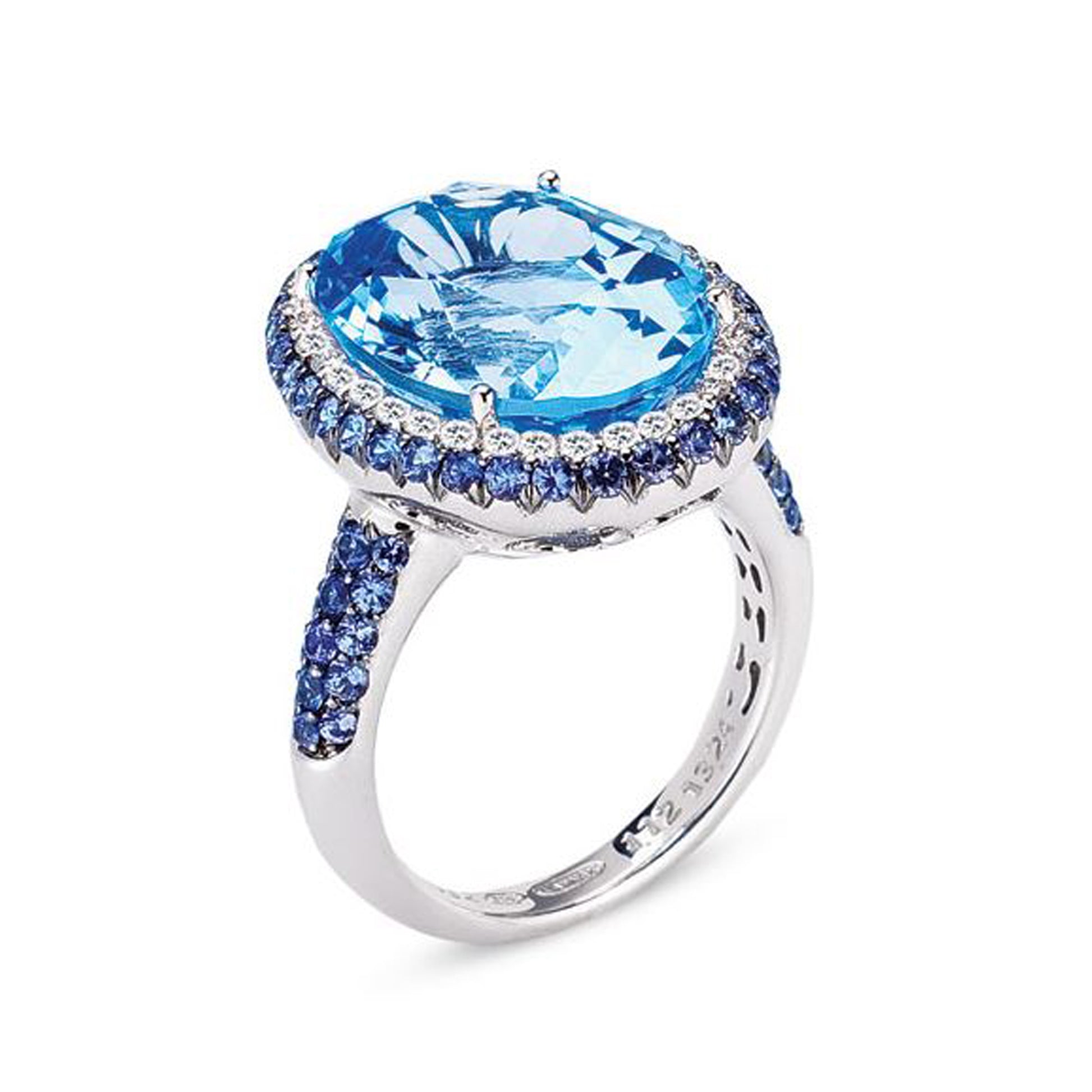 18K WHITE GOLD RING WITH DIAMONDS AND BLUE TOPAZ