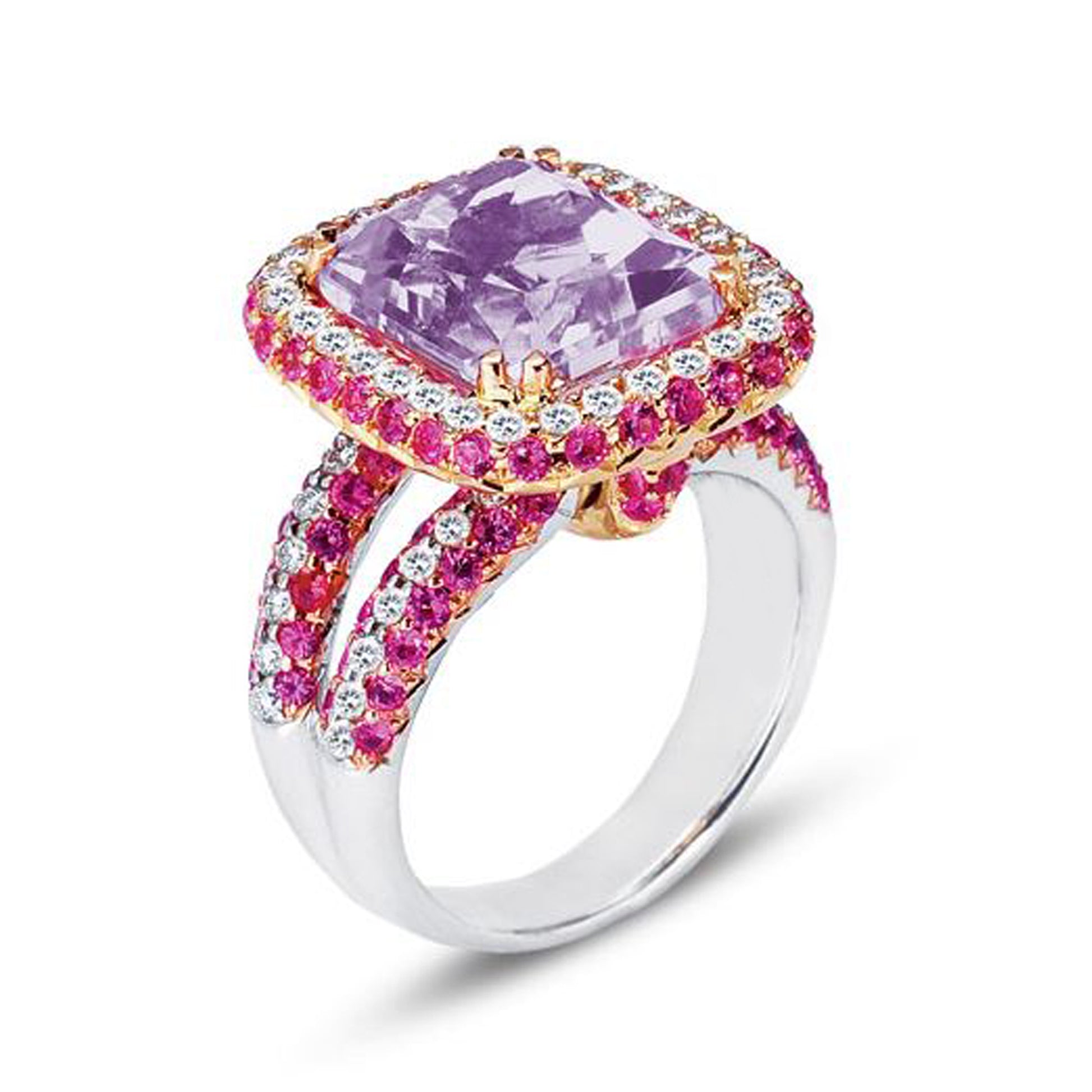 18K White Gold Ring With Diamonds Sapphires And Kunzite
