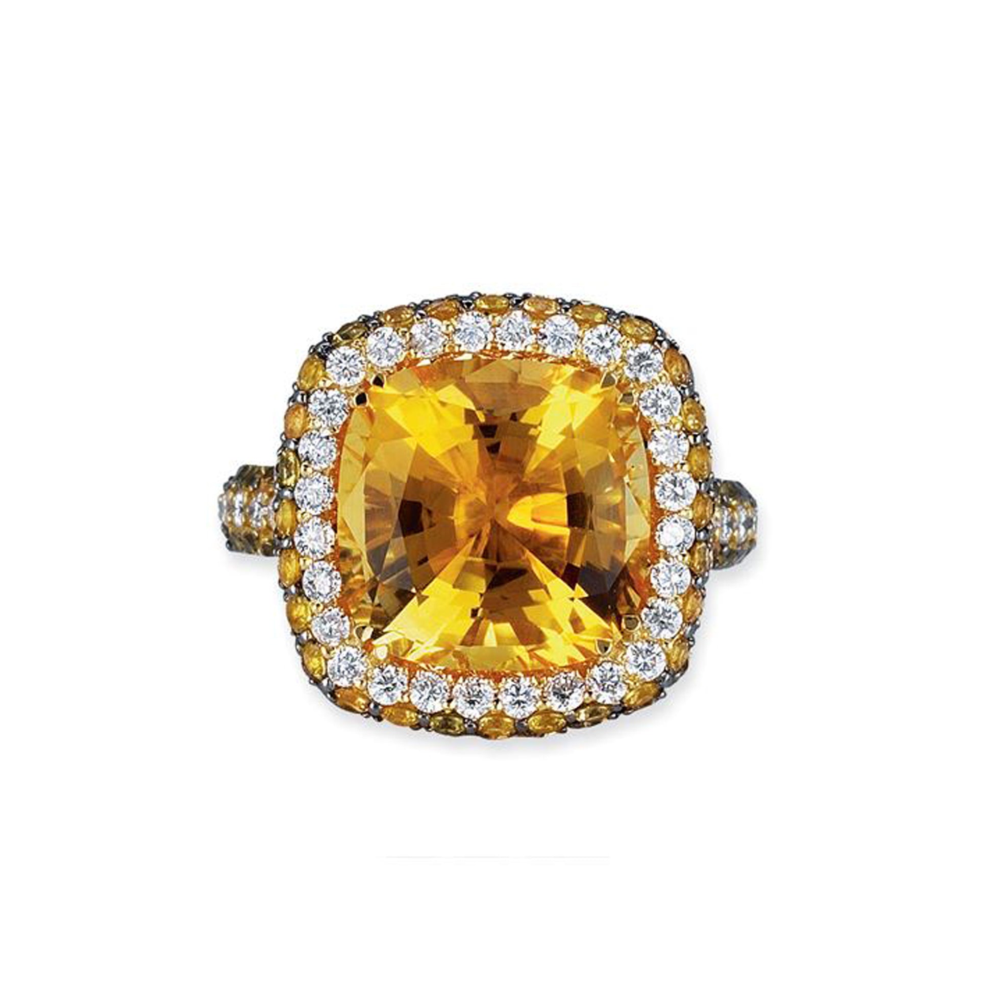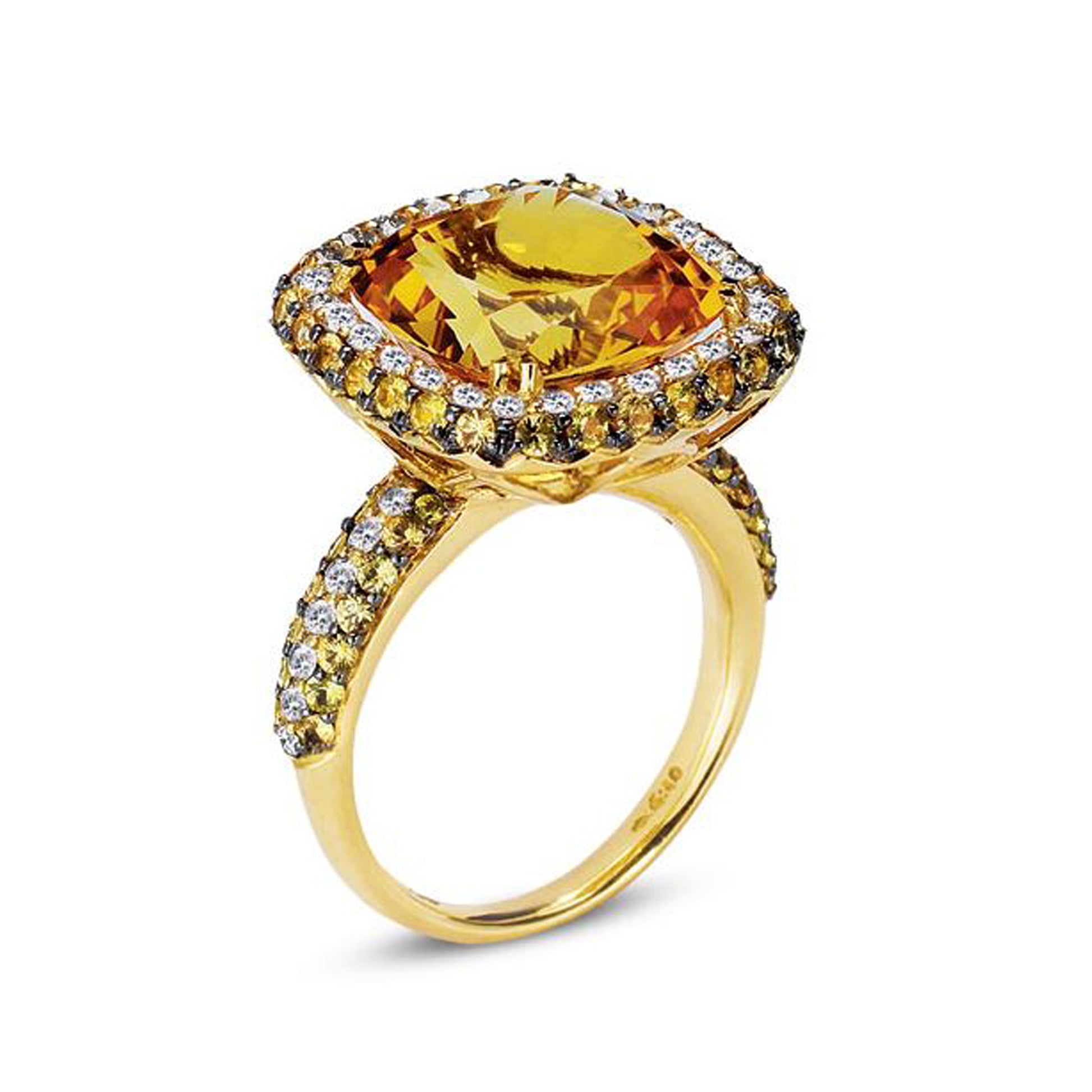 18K YELLOW GOLD RING WITH DIAMONDS SAPPHIRES AND CITRINE