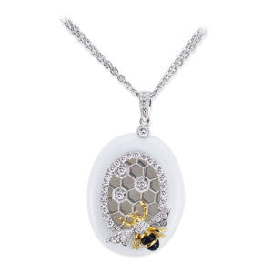 18K Two Tone Honeycomb Diamond Necklace With Black And White Agate