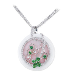 18K Two Tone Diamond Necklace With Tsavorite Rose Quartz And White Agate
