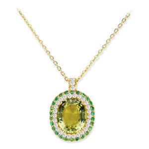 18K YELLOW GOLD PENDANT NECKLACE WITH DIAMONDS TSAVORITE AND LEMON QUARTZ