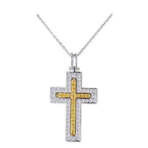 18K White Gold Cross Pendant Necklace With Diamonds And Sapphires