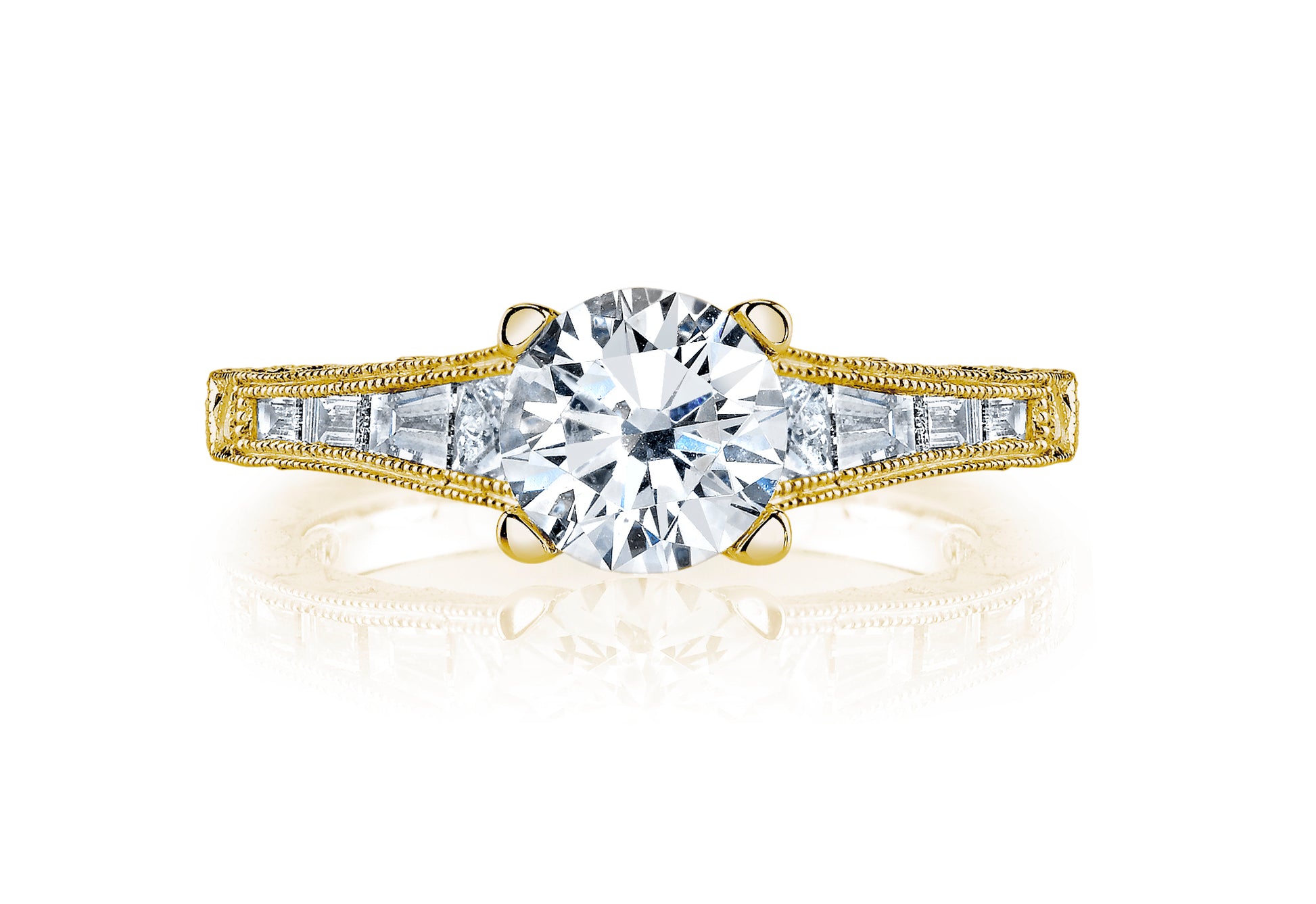 18K YELLOW GOLD DIAMOND AND SAPPHIRE ENGAGEMENT RING