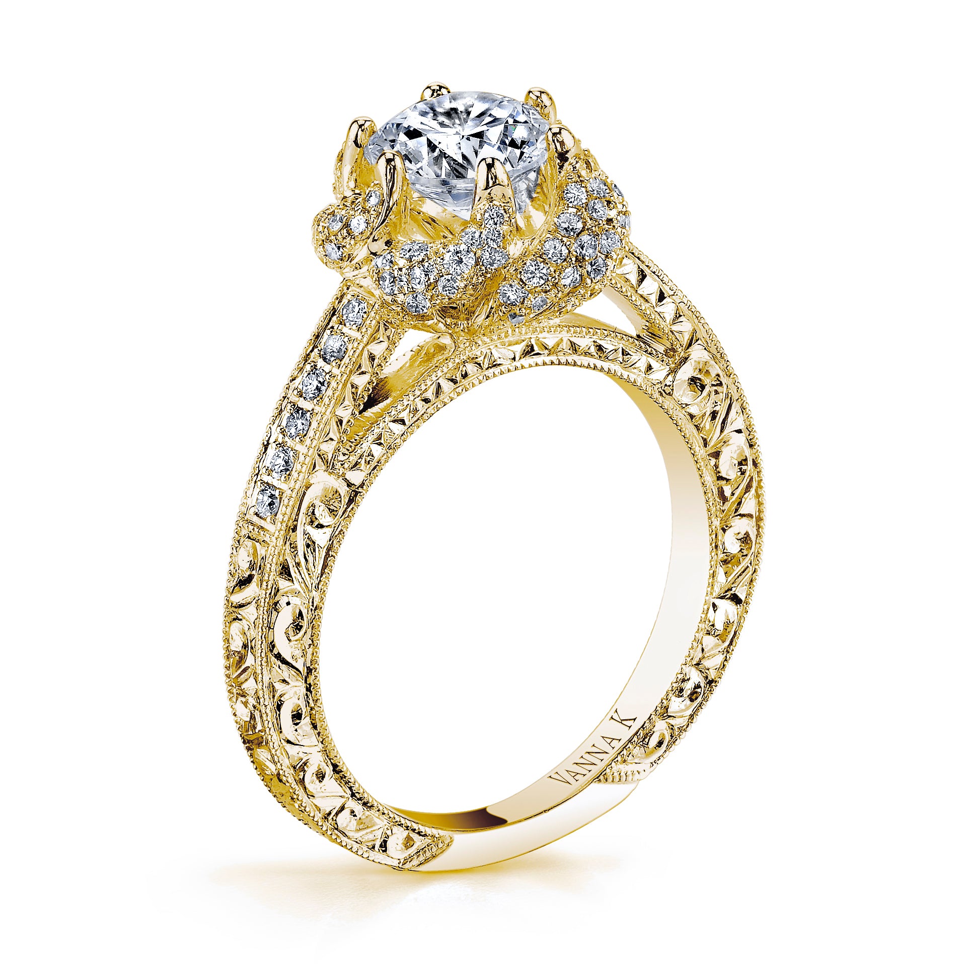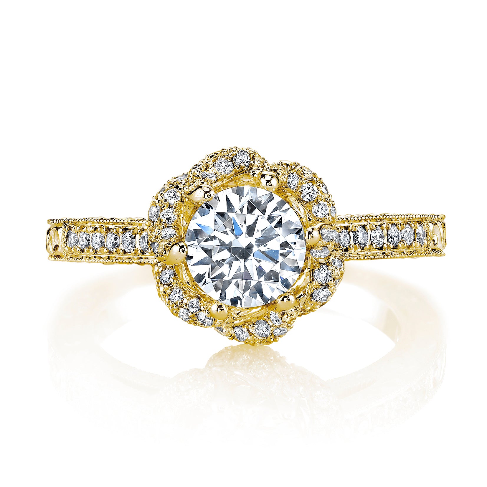 18K YELLOW GOLD HALO DIAMOND ENGAGEMENT RING
