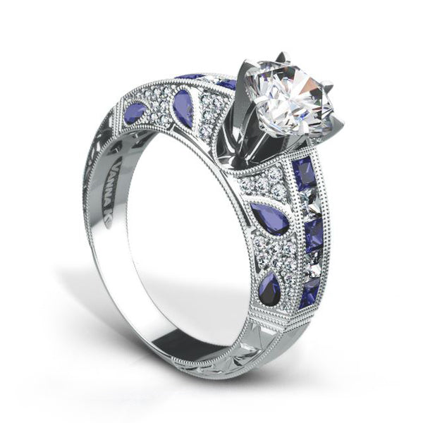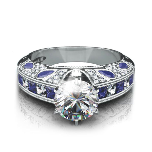 18K White Gold Engagement Ring With Diamonds And Sapphires
