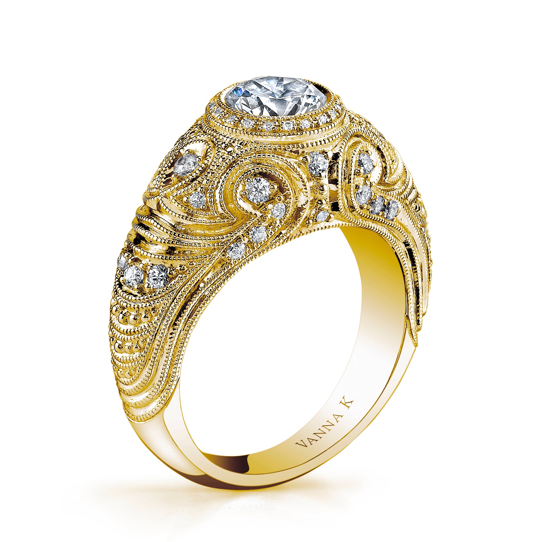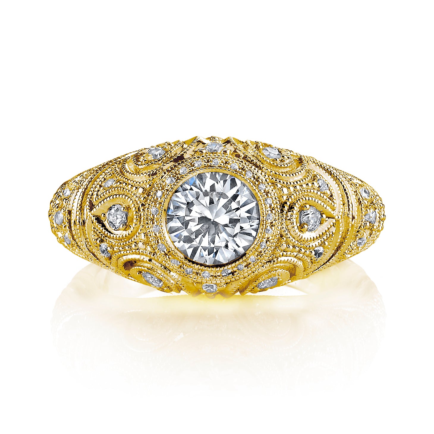 18K YELLOW GOLD HALO DIAMOND ENGAGEMENT RING