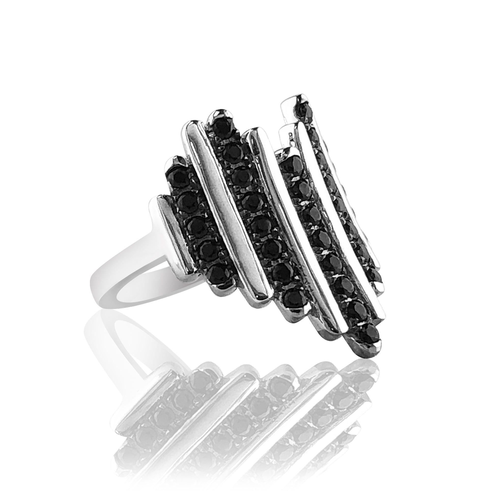 Sterling silver heart ring with black spinel