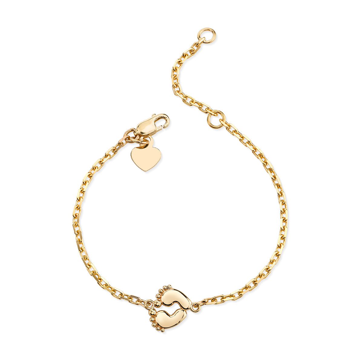 14K Yellow Gold Kids Baby Feet Bracelet 5" Or 6"