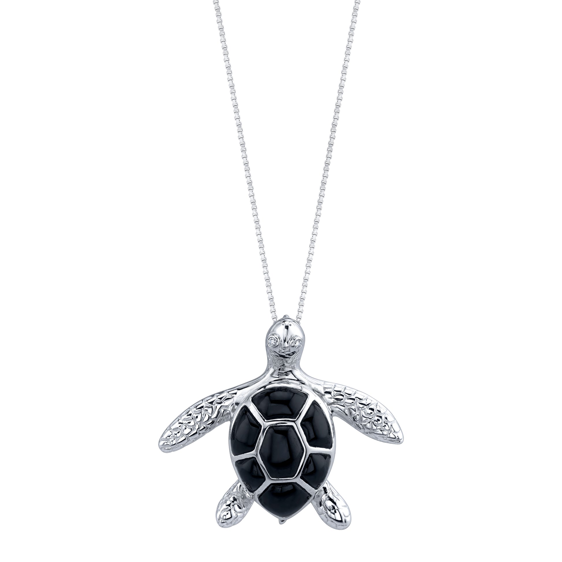 14K White Gold Sea Turtle (Honu) Diamond Necklace