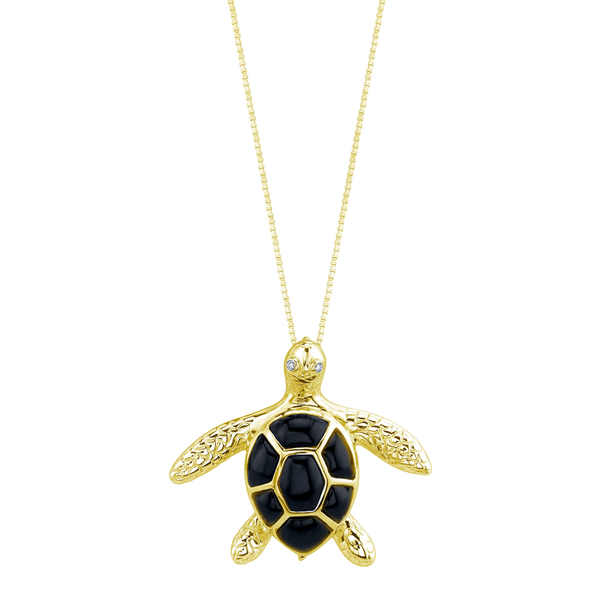 14K Yellow Gold Sea Turtle (Honu) Diamond Necklace