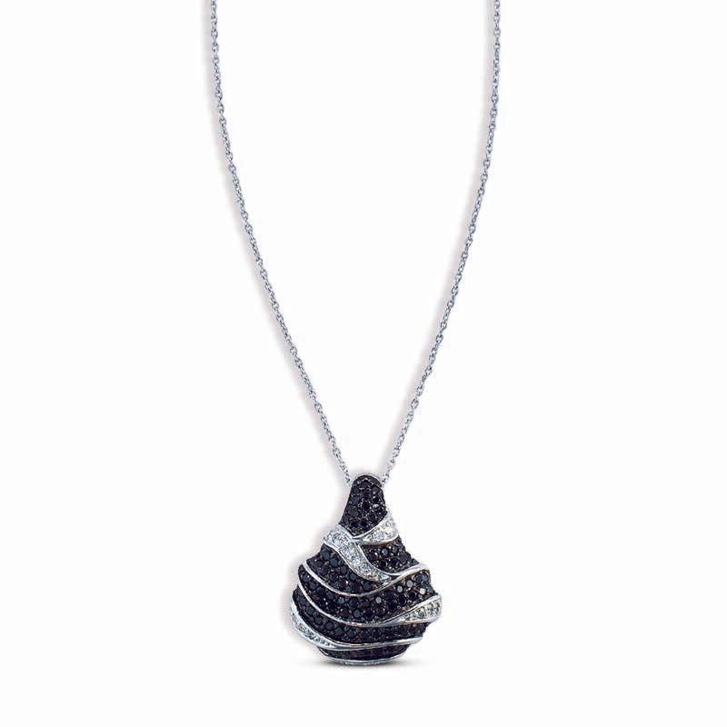 Black and clear cubic zirconia stones combine to form this stylish sterling silver pendant.18" chain included.