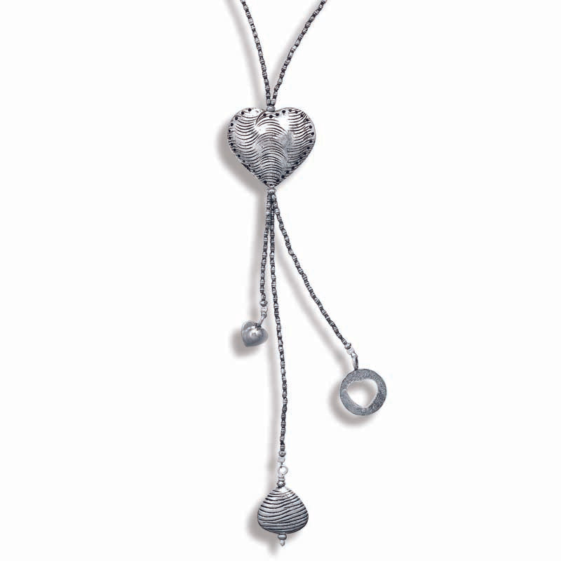 Sterling silver heart lariat measures 16" and comes with a 3" extender.