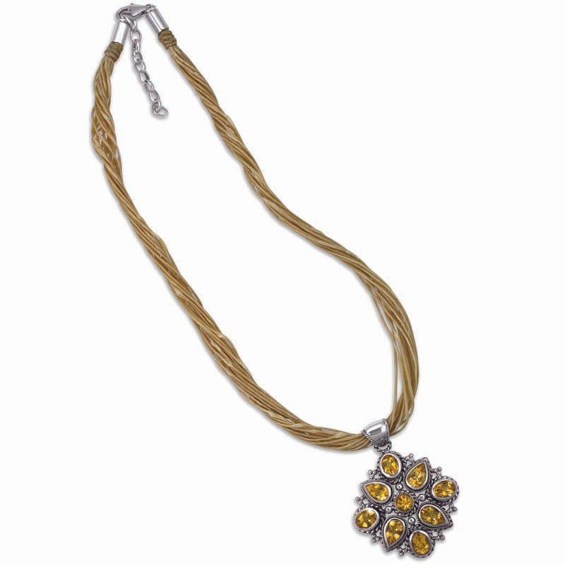 Rich in look,this sterling silver shield pendant is encrusted with champagne-colored cubic zirconia stones and is suspended from a 16" multi-strand necklace with a 3" extender.